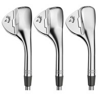 キャロウェイの新製品、「OPUSウェッジ」の名前は、カリフォルニアの最高級ワインをつくるワイナリー名を参考にしてつけられました。それほどに、極上なモデルを目指したということになります。リーディングエッジにやや丸みがあり、ティアドロップ型がより強調されているシェイプは、ツアープレーヤーとの入念なコミュニケーションをもとに、何度も改良を重ねて完成。フェース面では、鋭い37Vグルーブの角をキープしながら溝の幅を小さくして間隔を狭めることで、従来よりも本数が2本増加し、とくにラフやウェットなライでのスピン性能とコントロール性が大幅にアップしました。好評だったJAWS FORGEDウェッジのブラスト処理を引き継ぎ、キャロウェイ独自のマイクロフィーチャーも変わらず採用。グラインドには、従来のS、W、Cに加えてTグラインドが登場し、ロフトは48度から60度まで2度刻みの7種類がラインアップされています。