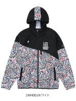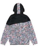 ニワトリのとさかをイメージした柄を大胆にプリントしたフード付きブルゾン。