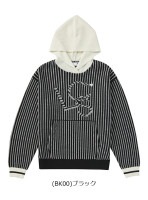 ストライプ柄の中にLE COQ SPORTIFの頭文字”LCS”をフランスのデザインアート手法の一つであるトロンプルイユ風にデザインしたフーディーセーター。