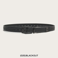異素材のPUを2種類組み合わせ高級感を出したスカルベルト。オリジナルのメタルバックルなど独特のデザインが特徴的。ベルト幅約3.5cm、全長約110cm、ウエスト最大95cmまで対応可能でカット式のサイズ調整出来る仕様。